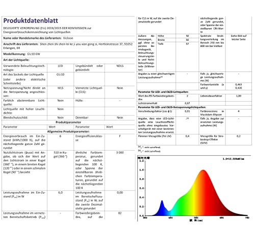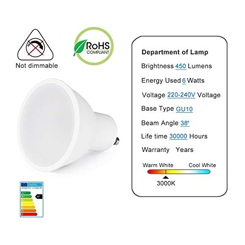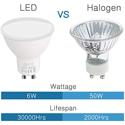 Energia efficiente: Le lampadine faretto da 6W a LED GU10 vanno a sostituire le vecchie lampadine alogene da 50W con luce non abbagliante e piacevole per gli occhi;