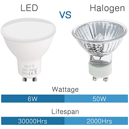 Energia efficiente: Le lampadine faretto da 6W a LED GU10 vanno a sostituire le vecchie lampadine alogene da 50W con luce non abbagliante e piacevole per gli occhi;