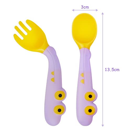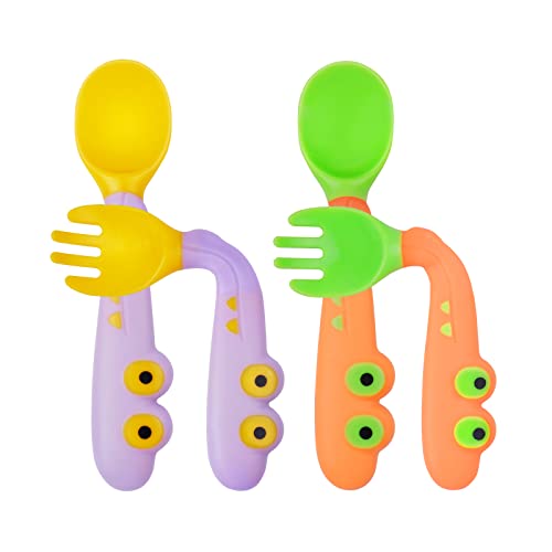 Vicloon 4 Pezzi Cucchiaio e Forchetta per Bambini, Posate Svezzamento dei Bambini, Cucchiaio e Forchetta da Addestramento per L'alimentazione del Bambino con Funzione Pieghevole (Forma di Coccodrillo)
