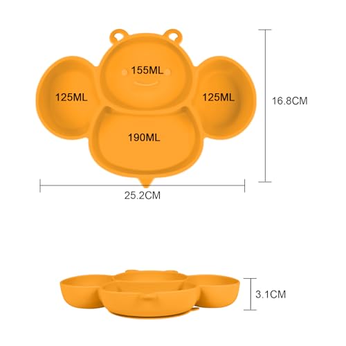 Design speciale per bambini: dimensioni appropriate per i bambini piccoli. La ciotola a ventosa in silicone presenta una simpatica forma di ape, che è popolare tra i bambini piccoli e aumenta il loro appetito durante l'alimentazione.
