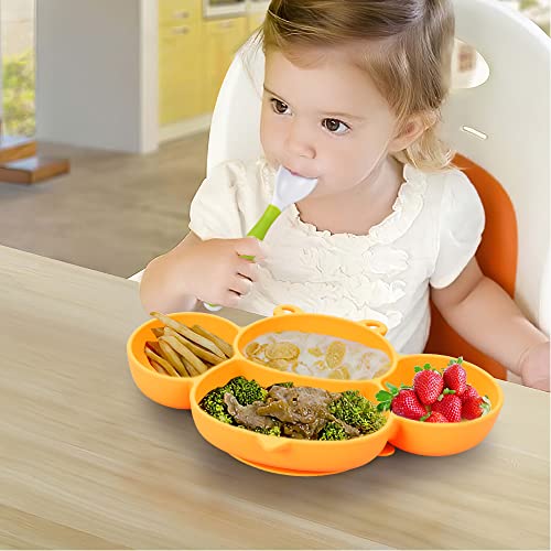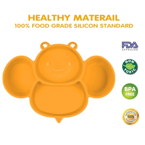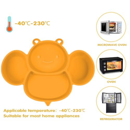 Vicloon Piatto per Bambini, Piastre per Neonati in Silicone Antiscivolo, Tovaglietta per Bambini Piastra Divide con Forte Aspirazione, Piatto Pappa Neonato, Ape - Giallo