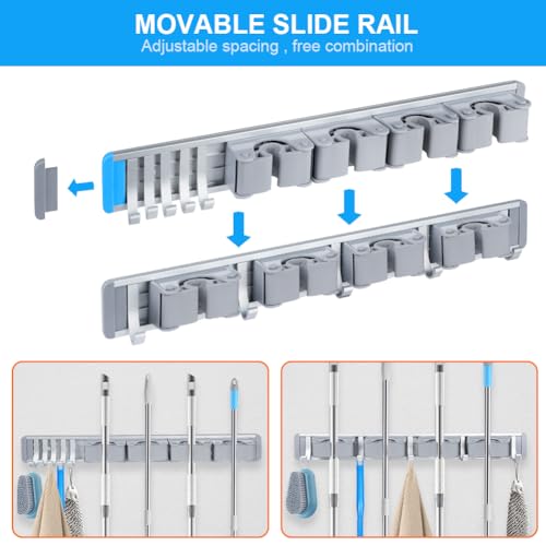 【Supporto parete per scopa regolabile】Il portascopa e i ganci possono essere riorganizzati e rimossi in qualsiasi momento in base alle dimensioni degli strumenti. Il porta scopa a parete regola automaticamente le dimensioni in base allo spessore del manico e si fissa in modo sicuro, contribuendo a evitare la caduta degli oggetti.