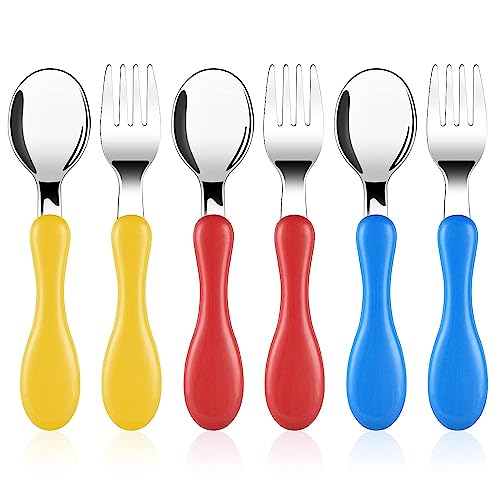 Vicloon Posate per Bambini, 6 Pezzi Posate Bambini in Acciaio Inossidabile senza BPA, Set Posate Bambini con 3 Forchette, 3 Cucchiaio, per Bambini 12 mesi in su, Rosso, Blu e Giallo