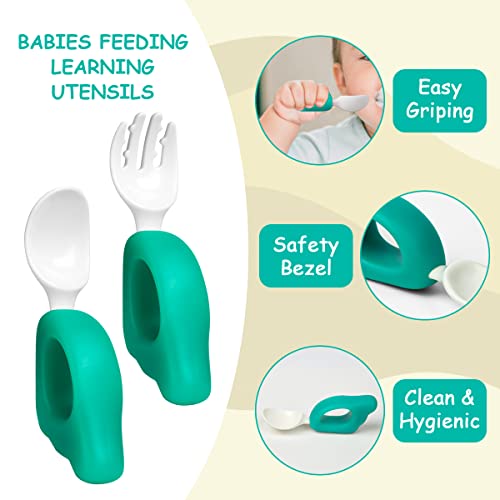 Vicloon Set di Posate per Bambini, 2 Pezzi Cucchiaio e Forchetta da Addestramento per L'alimentazione del Bambino, Cucchiaio e Forchetta per Bambini Posate Svezzamento, Forma di Ali D'angelo Verde