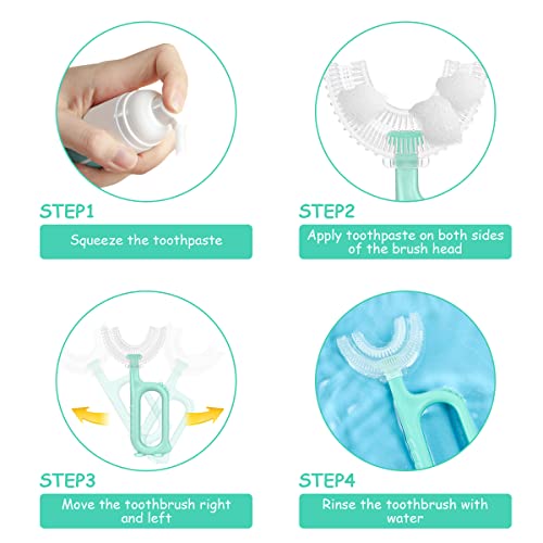 [Design speciale a forma di U] A differenza dei tradizionali spazzolini da denti, utilizziamo un esclusivo design della testina a forma di U, che si adatta meglio ai denti e pulisce efficacemente i denti. L'impugnatura facile da impugnare offre comodità e controllo quando i bambini si lavano i denti.