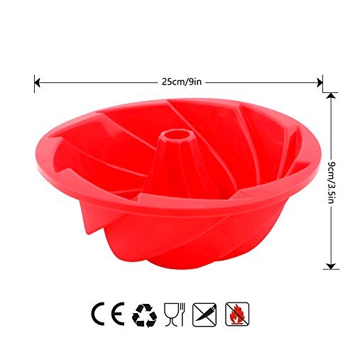 Vicloon Stampo in Silicone per Torte, Stampo per Ciambella Cake Molds, Bigné, Pudding e Cubi di Ghiaccio, Muffa da Forno 25*9 cm, Rosso