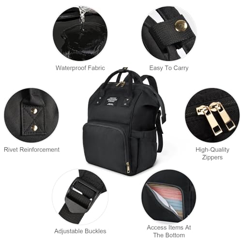 Vicloon Zaino Mamma Multifunzione, Fasciatoio Impermeabile, Grande Capacità Zaino con 3 Tasche Isolanti Bottiglia, che possono essere utilizzate come tote bag o appese a un carrello, Nero