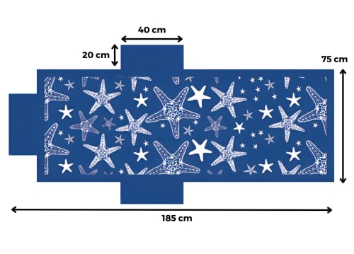 Vico Casa Telo Mare Lettino in microfibra, Blu, con tasche laterali e cuscino, 75x185cm / Telo mare spiaggia piscina, fantasia marina/Certificato OEKO-TEX