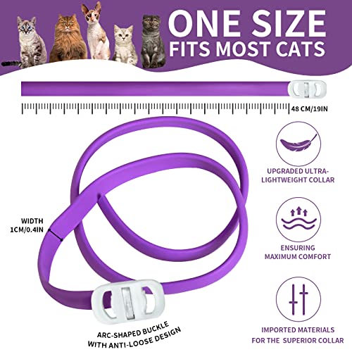 COMODO& REGOLABILE: Riceverete un collare calmante per gatti viola 2pcs, che può essere regolato in modo flessibile fino a 18,8 pollici, adatto a tutte le dimensioni e varietà di gatti. Il collare regolabile per gatti si adatta comoda