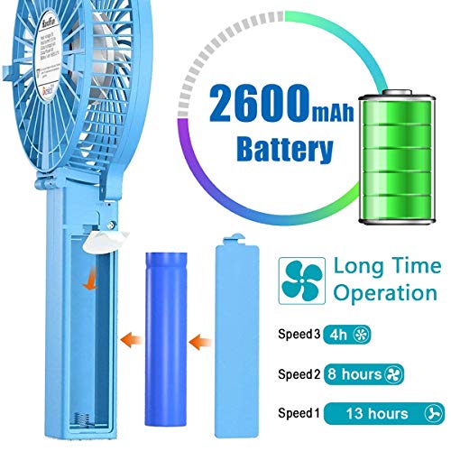 Victoper Mini Ventilatore Portatile, Mini Ventilatore USB Ricaricabile Ventola a Batteria 2600mAh, Ventilatore da Tavolo a 3 velocità Manico Pieghevole per la Casa Ufficio/Esterno/Campeggio, Blu