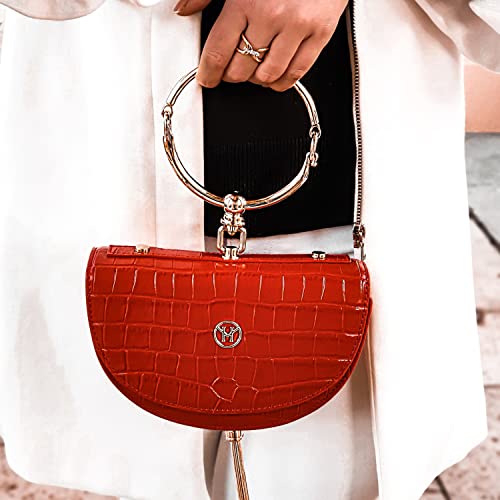 VICTORIA HYDE Borsa a tracolla da donna in vera pelle, colore verde, beige, rosso, mezza moon (Rosso)