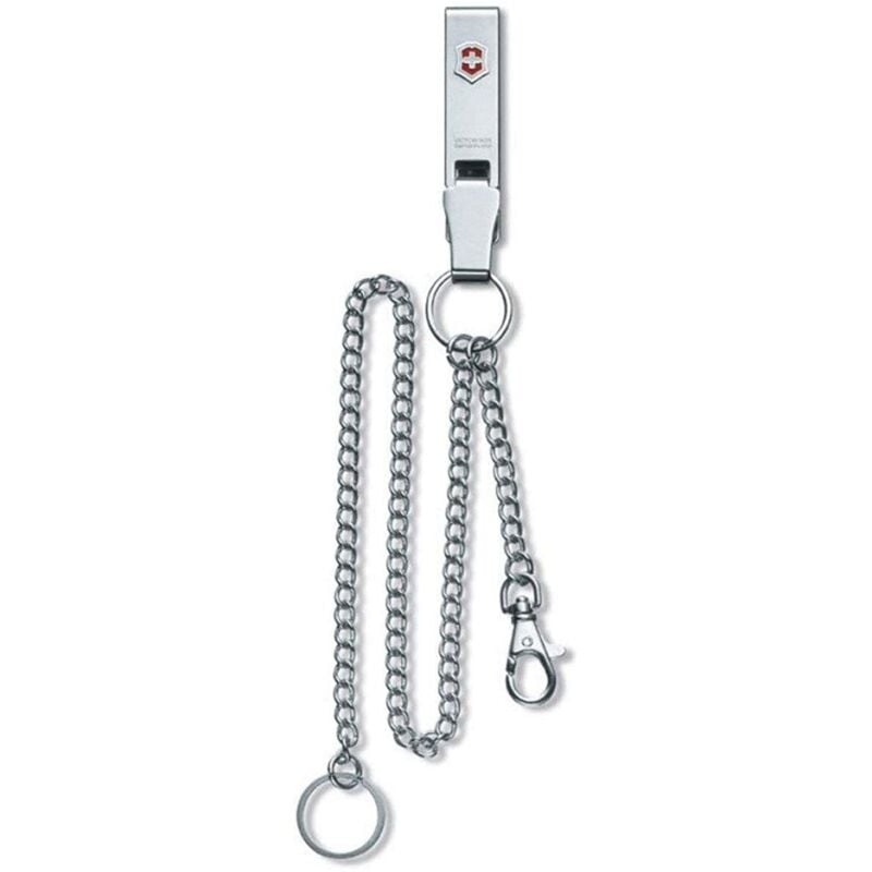 Victorinox Catena Portachiavi Da Cintura V-4.1860 - Descrizione del Prodotto Migliorata La Catena Portachiavi da Cintura Victorinox V-4.1860 è l'accessorio indispensabile per chi cerca una soluzione pratica e sicura per gestire le proprie chiavi, coltellini o piccoli attrezzi. Questo prodotto è progettato per offrire comodità e affidabilità nel quotidiano. Caratteristiche principali: Design Funzionale: La catena si aggancia facilmente alla cintura, garantendo che le tue chiavi o attrezzi siano sempre a portata di mano senza rischio di perderli. Catena Lunga: Dotata di una catena di lunghezza ottimale, permette di utilizzare le chiavi o gli attrezzi direttamente, senza la necessità di staccarli. Questo design intelligente assicura massima praticità nell'uso quotidiano. Versatilità d'Uso: Ideale non solo per chiavi ma anche per coltellini svizzeri Victorinox e una varietà di piccoli attrezzi, rendendolo un accessorio estremamente versatile per ogni avventura o necessità quotidiana.