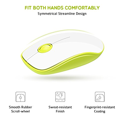 VicTsing Mouse Wireless Silenzioso, Mouse senza fili 2.4Ghz con Ricevitore USB Mobile Mouse Ottico 1600DPI Durata delle batterie di 24 Mesi(Stato Standby) - Bianco/Verde