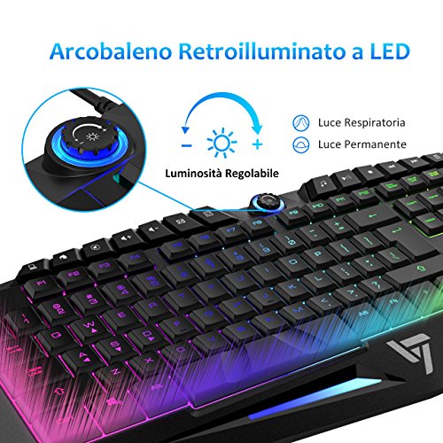 VicTsing Tastiera da Gioco Cablata Retroilluminata RGB, Tastiera Professionale Impermeabile con Anti-ghosting, (Tastiera Gaming)