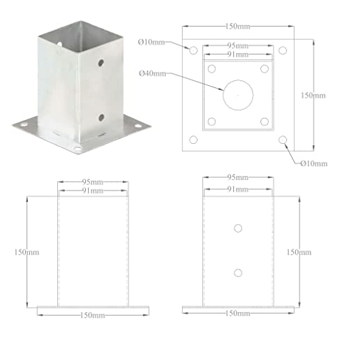 Questi ancoraggi per pali sono progettati per tubi quadrati da 91 mm.Questi ancoraggi per pali realizzati in metallo zincato sono resistenti alla ruggine