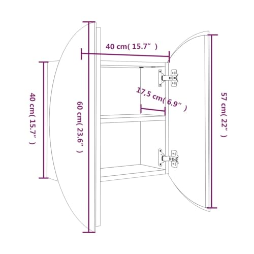 VidaXL Armadio da Bagno con Specchio Rotondo e LED Grigio 40x40x17,5cm