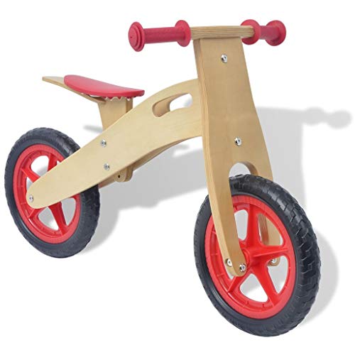 VidaXL Bicicletta di equilibrio in legno rosso/blu, bicicletta per bambino/bambina., rosso