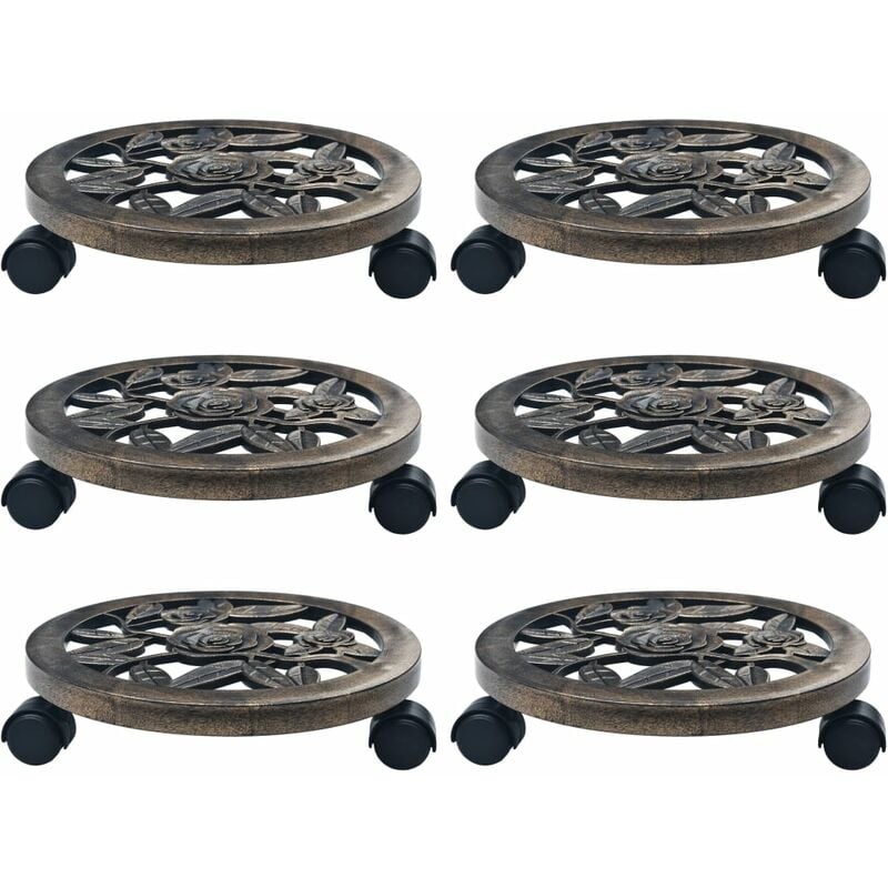 Spostate senza sforzo le piante in vaso con i nostri carrelli per piante! Che si tratti di spostare le piante del patio in casa o spostare le piante prima di pulire il pavimento, le ruote dei carrelli torneranno utili. Questi sottovasi per piante non sono solo durevoli e infrangibili, ma anche resistenti ai raggi UV e alle intemperie. Sono realizzati in plastica PP (polipropilene) ed emanano un aspetto sofisticato di ghisa. Questi simpatici stand per piante con ruote saranno anche un'aggiunta decorativa a qualsiasi spazio abitativo. Grazie alle ruote girevoli a 360°, i carrelli portavasi possono essere spostati senza sforzo. I carrelli per piante sono adatti a qualsiasi vaso standard per fiori e piante. Colore: Bronzo Materiale: Plastica PP (polipropilene) Dimensioni: 30 x 7,5 cm (Diametro x A) Con ruote girevoli a 360° Adatto sia per uso interno che esterno Assemblaggio richiesto: Sì La consegna include: 6 Carrelli per piante