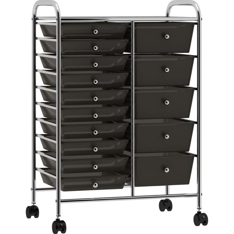 Questo carrello con cassetti presenta uno stile conciso e pratico, che intende offrire ampio spazio per mantenere i vostri articoli per ufficio o di bellezza ben organizzati e a portata di mano. La struttura cromata fornisce un supporto di peso robusto e durevole, mentre 15 cestelli rimovibili consentono di mantenere i vostri oggetti in spazio sufficiente. Sono facili da rimuovere e da pulire. Inoltre, le 4 ruote girevoli aggiunte facilitano il trasporto e lo stoccaggio. Questo carrello pu essere assemblato in breve tempo. Colore: Nero Materiale: Plastica, cromo Dimensioni complessive: 63 x 36,5 x 90,5 cm (L x P x A) Dimensioni cassetto grande: 28,6 x 36 x 12 cm (L x P x A) Dimensioni cassetto piccolo: 28,6 x 36 x 6 cm (L x P x A) Ruote con rotazione di 360 gradi per un facile spostamento Assemblaggio richiesto: S La consegna include: 1 Carrello 5 Cassetti grandi in plastica 10 Cassetti piccoli in plastica