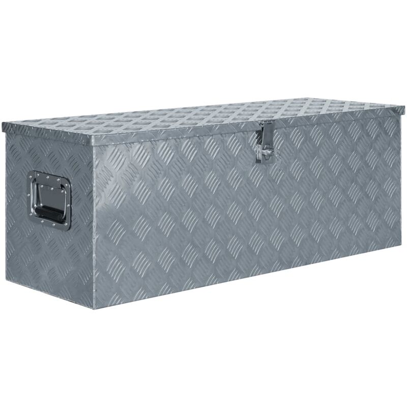 Grazie al suo design leggero e compatto, la nostra cassa in alluminio multiuso è la scelta ideale per l'imballaggio, lo stoccaggio e il trasporto. Può essere riposta all'interno di un veicolo, di un garage oppure può essere utilizzata in campeggio. Realizzata in lamiera di alluminio ondulato di alta qualitÃ, la cassa è resistente alla ruggine e solida. La cassa ha un interno spazioso per riporre gli attrezzi, accessori o arnesi ed è inoltre dotata di un sistema di chiusura per una maggiore sicurezza (2 chiavi incluse). Colore: Argento Materiale: Alluminio Dimensioni del coperchio:110,5 x 38,5 cm (L x P) Dimensioni di apertura: 108,5 x 37 cm (L x P) Altezza (con coperchio): 40 cm Spessore lamiera di alluminio: 1,3 mm Con sistema di chiusura (2 chiavi incluse) Con due maniglie per il trasporto Leggera e facile da pulire