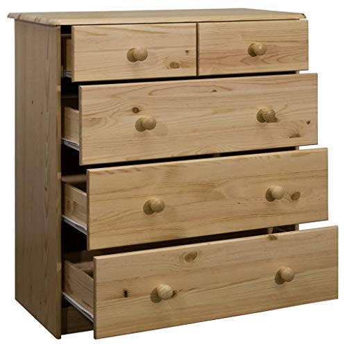 Dotata di 5 cassetti di diverse dimensioni, questa credenza offre ampio spazio per riporre vestiti, libri e altri oggetti diversi