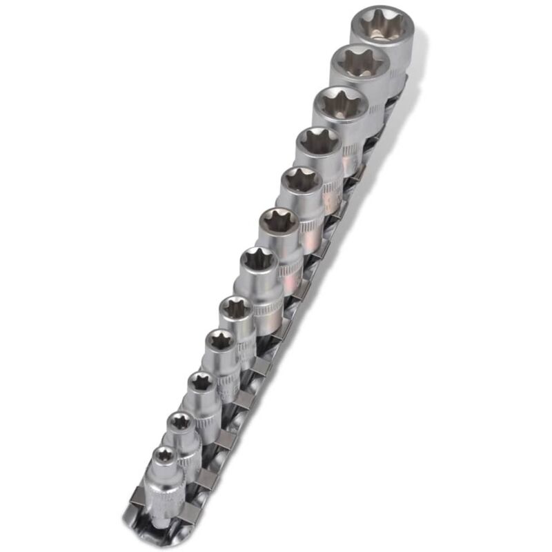 Questo set di chiave stella Torx, incluse 12 punte di diverse dimensioni e una striscia clip, è un insieme essenziale per molte applicazioni, di moto e biciclette automobilistiche che usano dispositivi di fissaggio Torx / stella! L'acciaio al cromo vanadio professionalmente trattato termicamente porta la resistenza e la durevolezza del set per un servizio affidabile a lungo termine. Le dimensioni sono tutte stampate per una facile identificazione. Con tutti i pezzi allineati su una striscia clip, è anche facile da immagazzinare e trasportare. Fornitura: 5 x 1/4 punta di chiave, 7 x 3/8punta di chiave, e una striscia clip di 22 centimetri. Tenete questo set di chiave stella nella vostra officina o garage! 12 pezzi set di chiave stelle Materiale: in acciaio cromo vanadio resistente Le misure sono tutte stampate La consegna include: 5 x 1/4 chiave di auto (. Circa 6,3 mm): E4, E5, E6, E7 e E8 7 x 3/8 chiave auto (circa 9,5 mm.): E10, E11, E12, E14, E16, E18 e E20 1 x striscia clip SKU