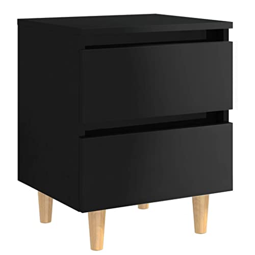 VidaXL Comodino con Gambe in Pino Massello Nero Laccato 40x35x50 cm