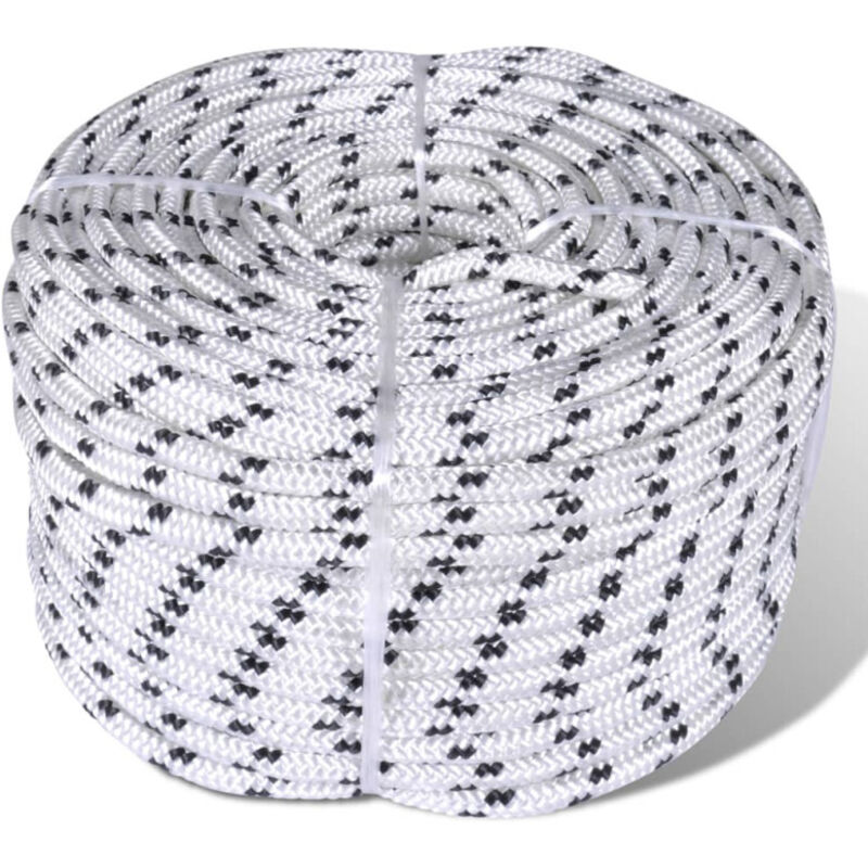 La corda in poliestere intrecciata è ampiamente utilizzata in campo navale e per applicazioni universali, essendo ideale per l'uso come sartiame o altra corda navale, applicata alle carrucole, come corda per tende o per stendere i panni e altro ancora. La corda in poliestere ha una resistenza elevata, ma ha una bassa elasticità . In aggiunta, ha una buona resistenza ai raggi UV, all'abrasione e alle sostanze chimiche, per garantire un uso a lungo termine. Si prega di notare che questa corda ha la parte esterna intrecciata, ma i fili centrali non sono intrecciati. Colore: Bianco Materiale: Poliestere Spessore: 8 mm Lunghezza: 500 m Tensione di rottura: 550 kg Forza lavoro: 110 kg Resistente ai raggi UV e all'abrasione Alta resistenza all'acqua salata, agli acidi e al petrolio Alta resistenza e bassa elasticità Nota: Non adatta per arrampicarsi, sollevare merci/carichi o per essere utilizzata con dondoli o altalene Materiale: Poliestere: 100%