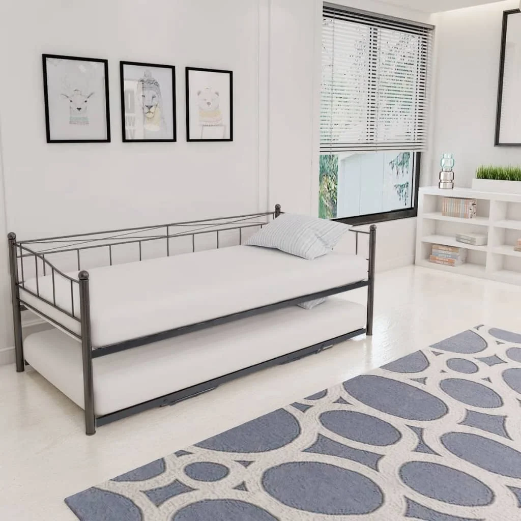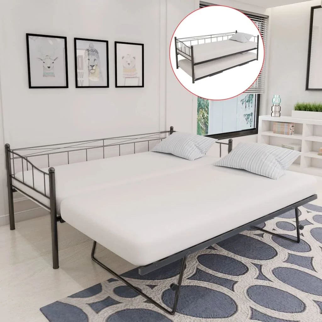 VidaXL Bed Frame Black Steel 180x200/90x200 cm 6FT Super King