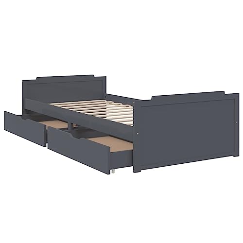 VidaXL Giroletto Cassetti Grigio Scuro Legno Massello di Pino 90x200cm