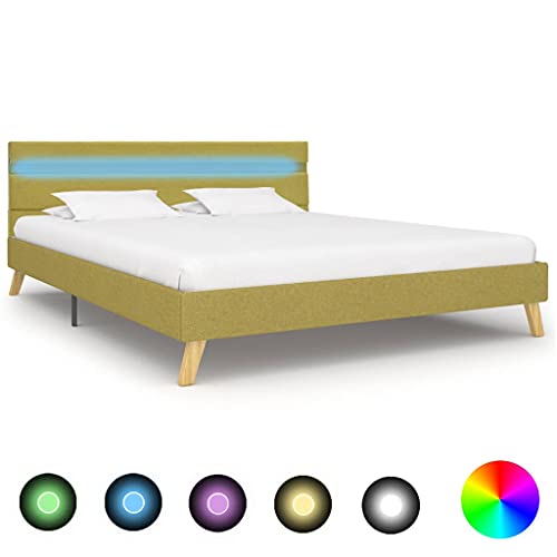 VidaXL Giroletto con Luci LED Imbottito Classico Elegante Telaio Letto Struttura in MDF Gambe in Legno di Pioppo Verde in Tessuto 160x200 cm