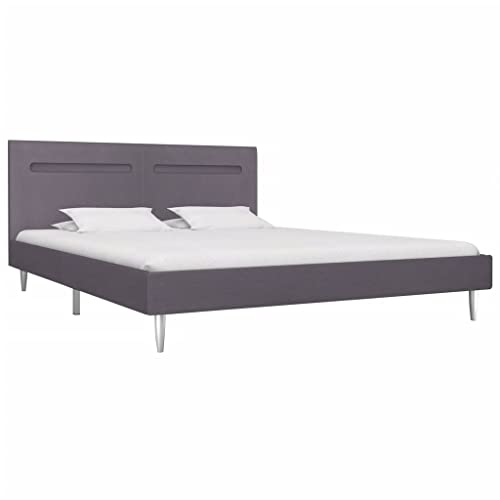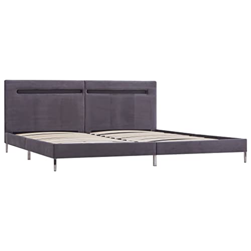 VidaXL Giroletto con Luci LED Imbottito Classico Elegante Telaio Letto Struttura in Metallo e Legno Gambe in Ferro Grigio in Tessuto 160x200 cm