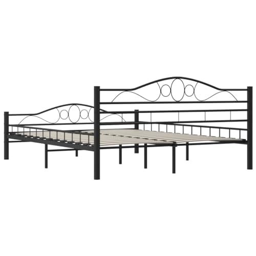 VidaXL Giroletto con Rete a Doghe Elegante Classico Robusto Resistente Arredo Casa Struttura Telaio Letto Nero in Acciaio 160x200 cm