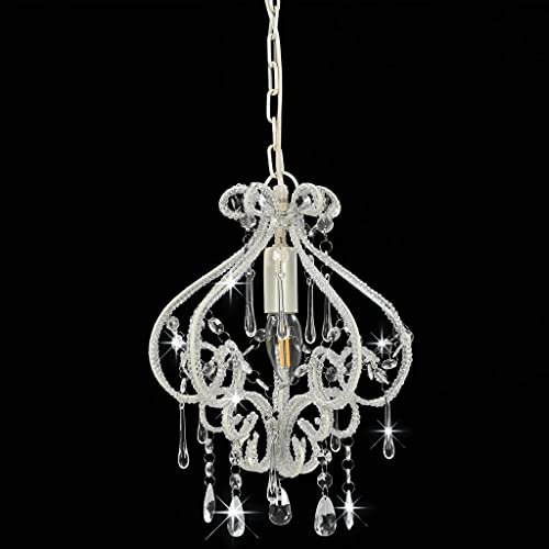 VidaXL Lampadario con Perle di Cristallo Rotondo 1 Lampadina E14 Lampada Soffitto Luce Pendente Base in Metallo Bianco Gocce Acrilico Trasparente