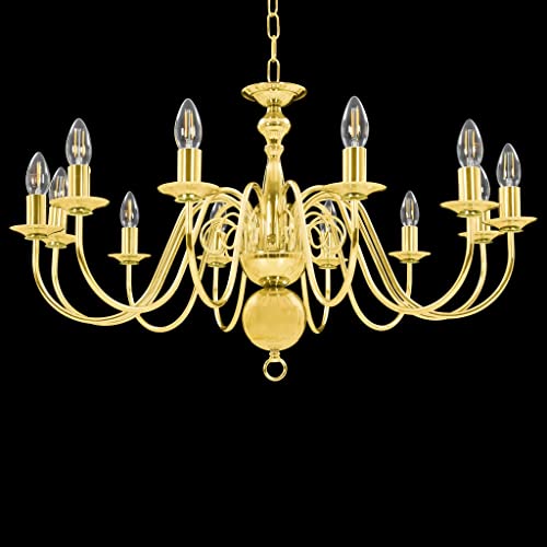 VidaXL Lampadario Rotondo 12 Lampadine E14 Elegante Anticato Lampada da Soffitto Luce a Sospensione per Interni Dorato in Metallo