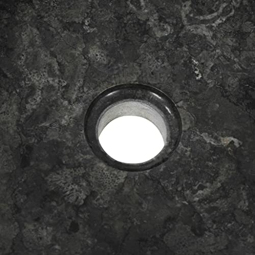VidaXL Lavandino Classico Elegante Rotondo Lavorato a Mano con Foro Scarico Lavabo Lavello Arredi Bagno 40x12 cm in Marmo Naturale Nero