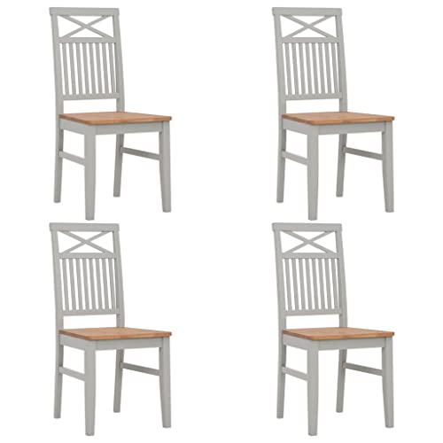 VidaXL 4X Legno Massello Rovere Sedie da Pranzo Stile Vintage Lavorate a Mano Seggiole Sedute Arredo da Cucina Finitura Grigia 44x59x96cm
