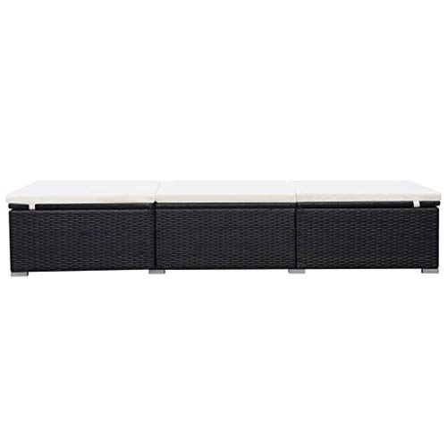 VidaXL 2X Lettini Prendisole con Cuscini Sfoderabili Impermeabile Robusto Sedie a Sdraio da Giardino in Polyrattan Nero e Bianco Crema