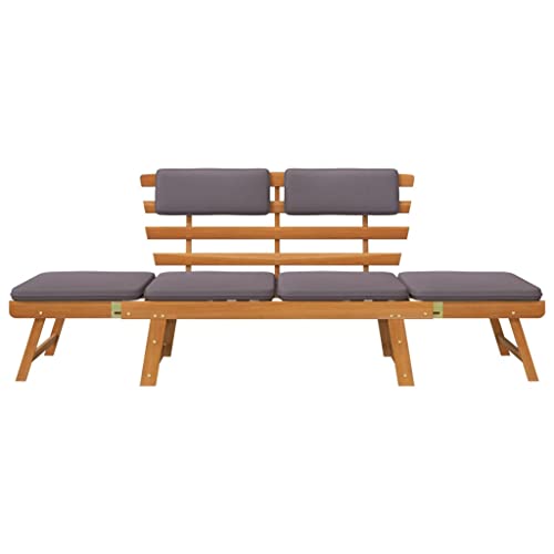 VidaXL Lettino da Giardino 2 in 1 con Cuscino Rustico Elegante Sedia a Sdraio Arredo Panca Panchina per Esterni Marrone e Grigio Legno Massello Acacia