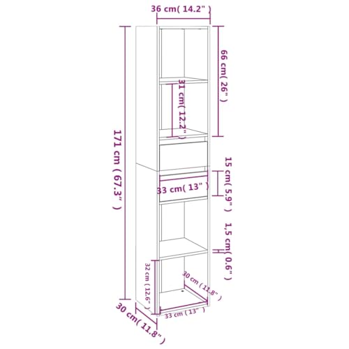 Progettata con 4 ripiani e 2 cassetti, la libreria offre un ampio spazio per conservare riviste e libri ben organizzati e a portata di mano