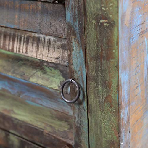Con un cassetto e uno scomparto, questo tavolino laterale in stile anticato in legno di recupero è il pezzo perfetto per la tua stanza. Le differenze in venature e colori conferiscono a questo mobile un carattere unico.
