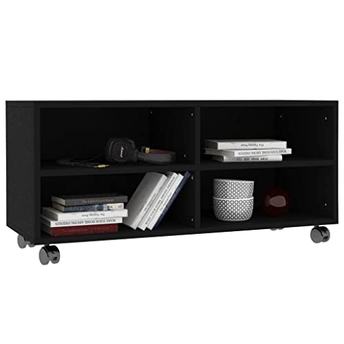 VidaXL Mobile Porta TV con Ruote Elegante Pratico con Ripiani Aperti Credenza Dispositivi Multimediali Nero 90x35x35cm in Truciolato