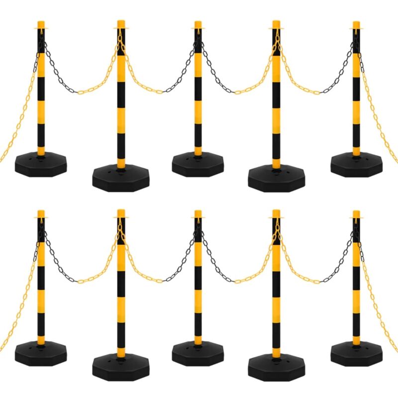 Questo set di pali stradali con catena � progettato come mezzo economico ma efficace per delimitare le aree. � adatto per parcheggi, magazzini, spazi pubblici, strade private e altro. La catena di plastica da 10 m pu� essere facilmente attaccata ai pali di segnalazione per bloccare l'accesso. Il set � leggero, quindi facile da trasportare. Per una maggiore stabilit�, la base inclusa pu� essere riempita con acqua o sabbia. I colori vivaci rendono il palo stradale altamente visibile anche in condizioni di scarsa illuminazione. Colore: Giallo e nero Materiale del palo: PE Materiale catena: Plastica Altezza: 90 cm Dimensioni della base: 28 x 28 cm (L x P) Lunghezza della catena: 10 m Ogni base pu� essere riempita con sabbia o acqua Veloce e facile da installare e conservare Assemblaggio richiesto: S� La consegna include: 10 Montanti 1 Catena
