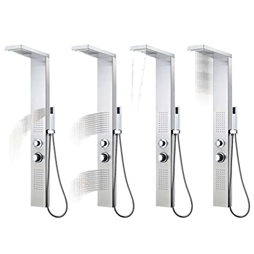 Questo pannello doccia in acciaio inossidabile è dotato di un soffione a pioggia o a cascata, di due set di getti per il massaggio del corpo e di una doccia a telefono. Non solo permette di fare una doccia rilassante ma aggiunge anche un tocco di eleganza al bagno.