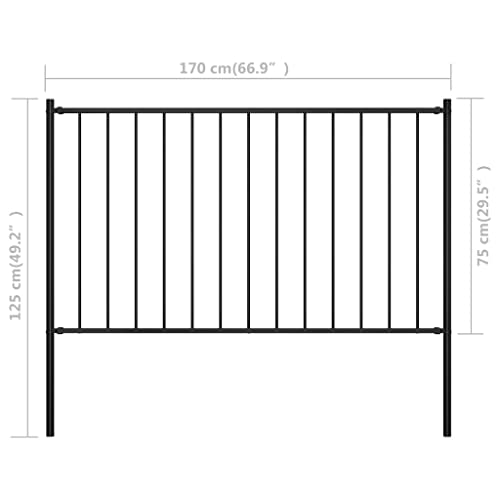 VidaXL Pannello di Recinzione con Pali Robusto Durevole Struttura Divisorio Esterni Recinto Giardino in Acciaio Verniciato 1,7x0,75m Nero