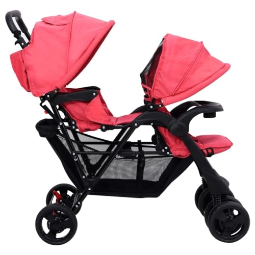 VidaXL Passeggino Gemellare a Tandem Rosso in Acciaio