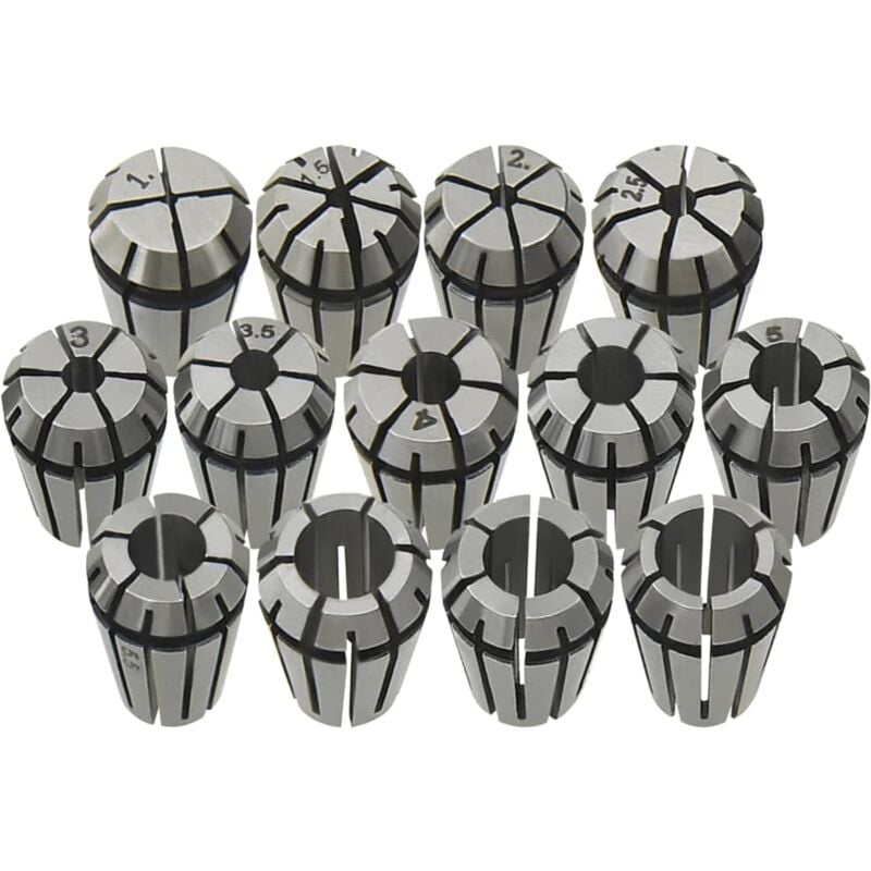 Queste 13 pinze ER11 sono adatte per lavorazioni di alesatura, fresatura, foratura, maschiatura, incisione, CNC, mandrini e simili. Il set � con campo presa da 1 mm a 7 mm. Queste pinze sono realizzate in acciaio di alta qualit�, stabili e pratici nelle prestazioni. Funzionano con alta precisione, buona elasticit� e resistenza agli urti. Il set � costruito con un design auto-sbloccante e gli strumenti non rimangono bloccati nel supporto. Ogni pinza � ben confezionata in un contenitore protettivo separato con un'etichetta. Inoltre, ogni pinza � contrassegnata da una dimensione, quindi � facile essere identificata. Colore: Argento Materiale: Acciaio 45 # Modello: ER11 Precisione: 0,02-0,04 Campo serraggio: 1 mm, 1,5 mm, 2 mm, 2,5 mm, 3 mm, 3,5 mm, 4 mm, 4,5 mm, 5 mm, 5,5 mm, 6 mm, 6,5 mm, 7 mm Temprato e rettificato per la precisione