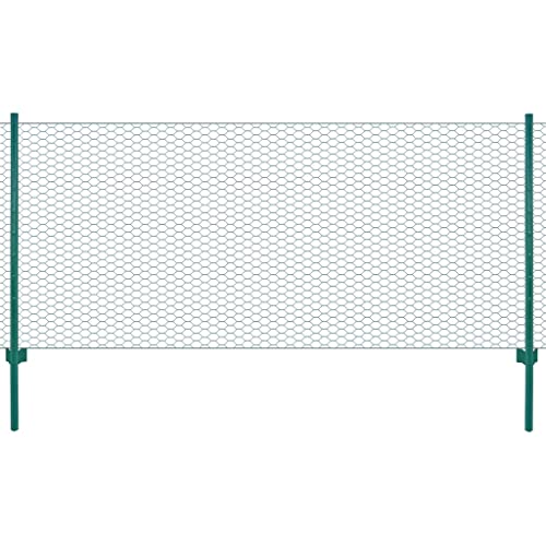 VidaXL Rete per Recinzione con Pali Antiruggine Robusto Pannello Rotolo Recinto Protezione Strutture in Acciaio 25x0,75 m Rivestimento in PVC Verde