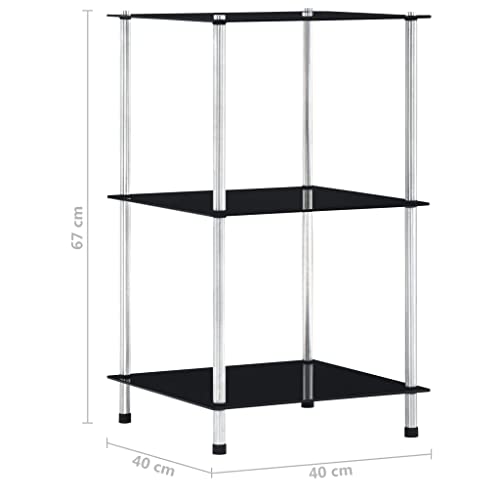 VidaXL Scaffale a 3 Livelli Ripiani Credenza Scansia Scaffalatura Mensole Vetrinetta Cambusa Armadietto Mobiletto Madia Nero in Vetro Temperato
