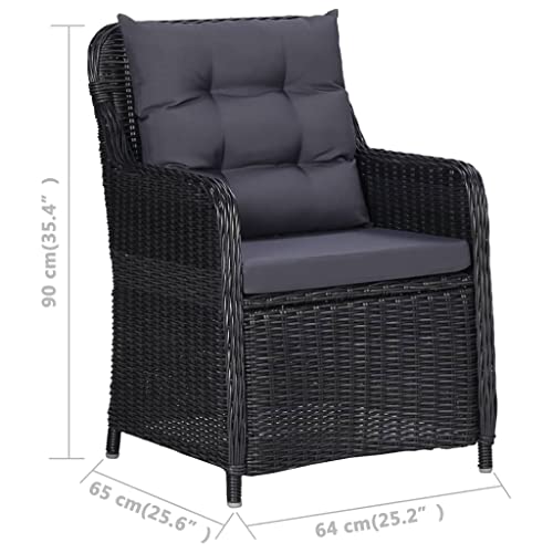 VidaXL 2X Sedie da Pranzo per Giardino con Cuscini e Braccioli Robuste Sedute Seggiole Arredi per Esterni in Polyrattan Nere Telaio in Acciaio